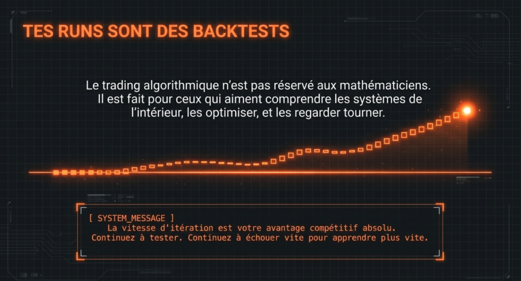 Le trading algorithmique n’est pas réservé aux mathématiciens ou aux traders de Wall Street. Il est fait pour les gens qui aiment comprendre les systèmes de l’intérieur, les optimiser et les regarder tourner. Des gens exactement comme toi.