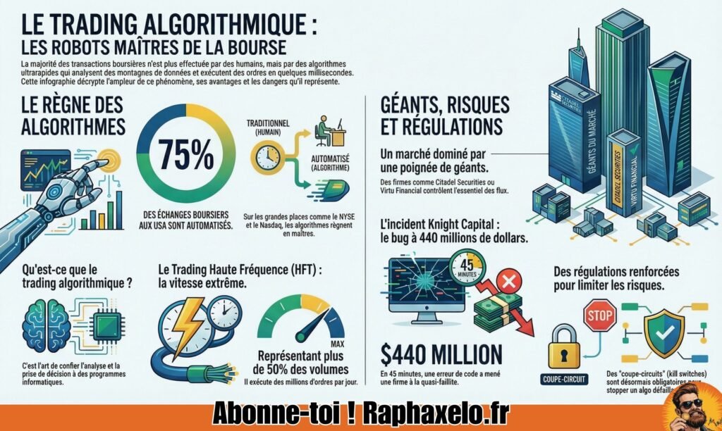 Si vous pensez que les robots ne bossent que dans des usines ou sur Mars, détrompez-vous ! Aujourd’hui, ils travaillent surtout… sur les marchés boursiers. Derrière la façade des cours de Bourse qui défilent à la seconde, se cache un monde où les algorithmes règnent en maîtres silencieux. Ces petits bouts de code brassent des milliards en quelques battements de cils, orchestrant la majorité des transactions sans même cligner d’un œil.